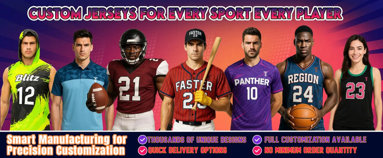 We’ll handle the rest! Premium fabrics, pro-level printing. Get your fully custom jerseys now!